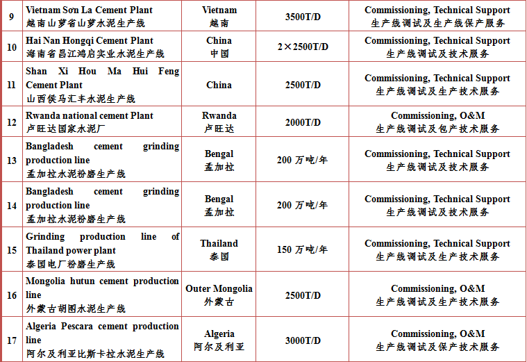 運城市昌潤水泥工程技術(shù)有限公司主要業(yè)績表
